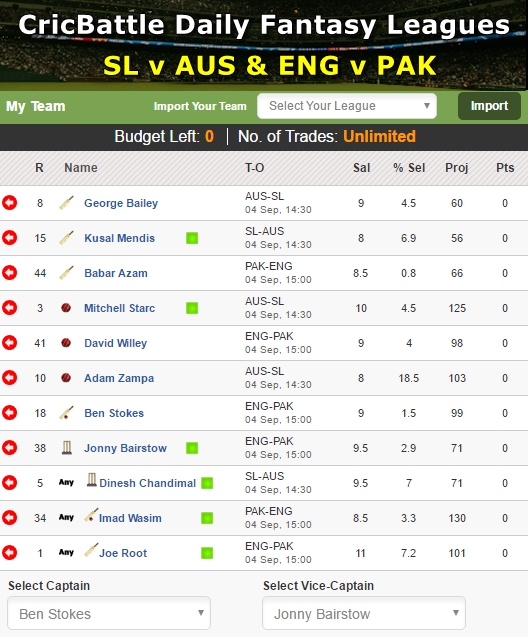 | CricBattle Daily Fantasy Cricket League Tips SL v AUS & ENG v PAK on September 4 by Soubhagya Swain,3390 days ago |