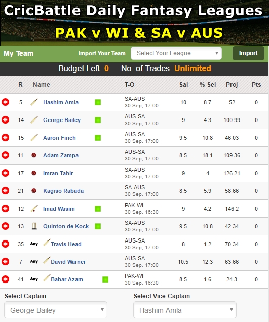 | CricBattle Daily Fantasy Cricket League Tips PAK v WI & SA v AUS on September 30 by Soubhagya Swain,3365 days ago |